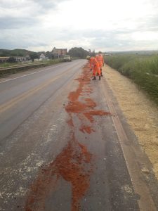 2° Pelotão do Corpo de Bombeiros, foi acionado para realizar limpeza de soja da pista na BR-365