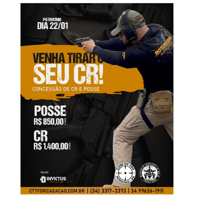 Acontece neste sábado (22) a partir das 08h, a 23ª turma para a emissão do CR- Certificado de Registro e Posse de Armas de fogo, os dois procedimentos são feitos pelo Exercito Brasileiro e pela Polícia Federal