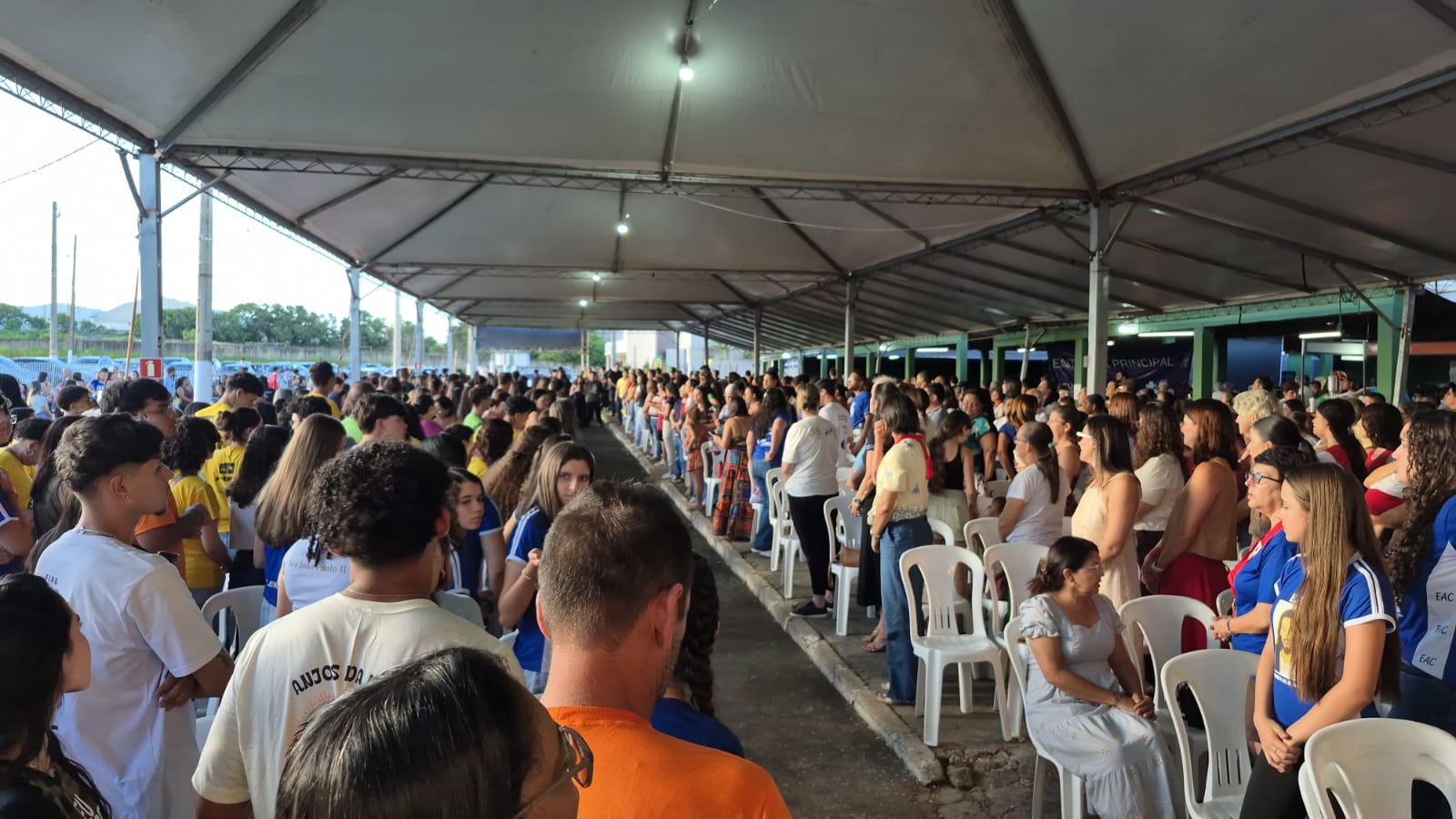 No fim da tarde de ontem (17), uma falta de energia não impediu que o Diácono João Vitor Mariano terminasse sua pregação apenas com sua voz, o que manteve o entusiasmo do público.