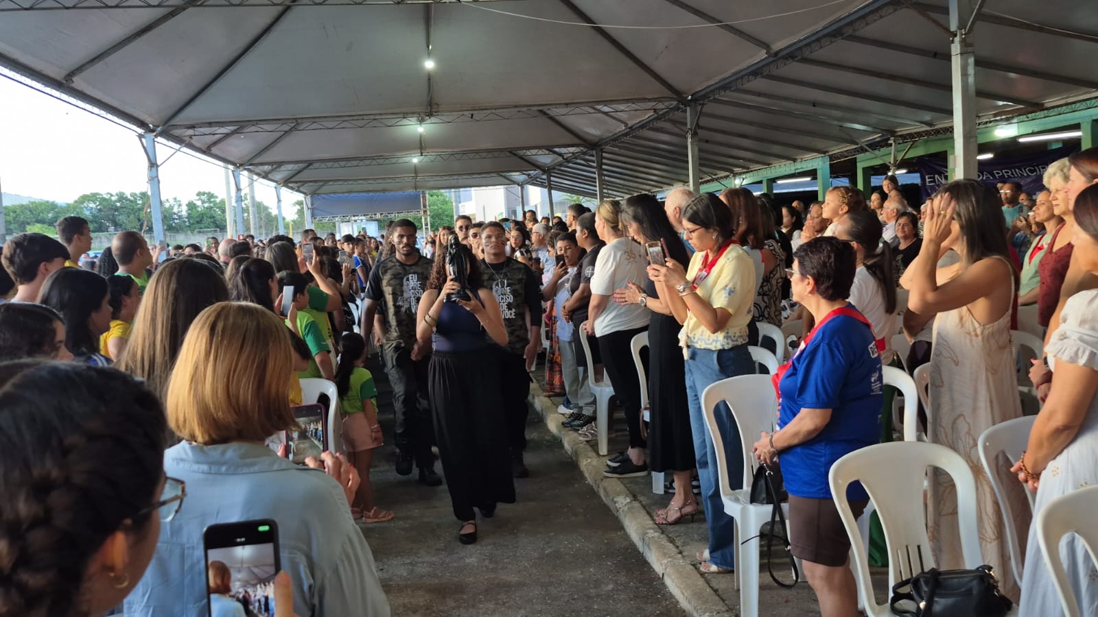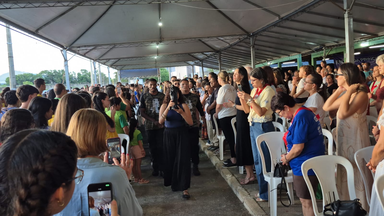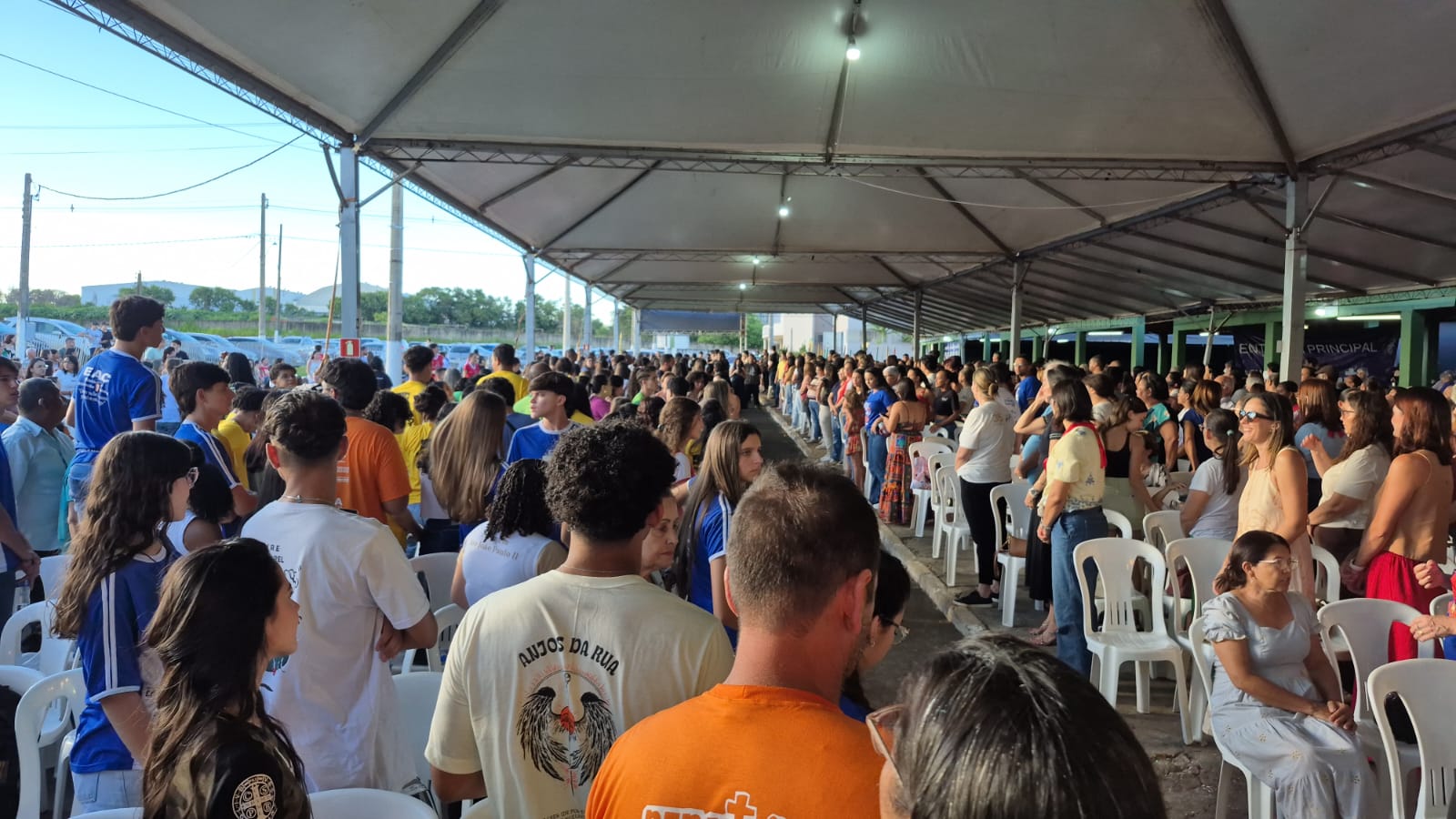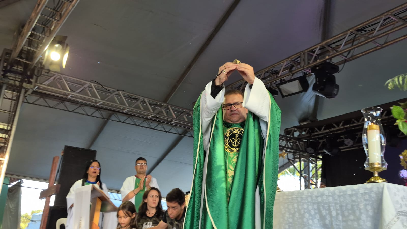 No fim da tarde de ontem (17), uma falta de energia não impediu que o Diácono João Vitor Mariano terminasse sua pregação apenas com sua voz, o que manteve o entusiasmo do público.