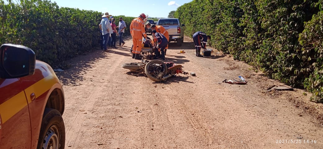 Nesta terça-feira (25), por volta das 13h40, o Corpo de Bombeiros de Patrocínio compareceu na BR-365, KM 481, na estrada vicinal que dá acesso à Fazenda Makena a fim de atender uma colisão frontal envolvendo uma moto Falcon e uma caminhonete Hilux.