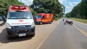 No local houve uma colisão entre um veículo de passeio e uma motocicleta que era conduzida por um homem de 42 anos de idade. O motociclista foi socorrido pela Unidade de Atendimento Avançado do Samu com fratura exposta na perna direita.