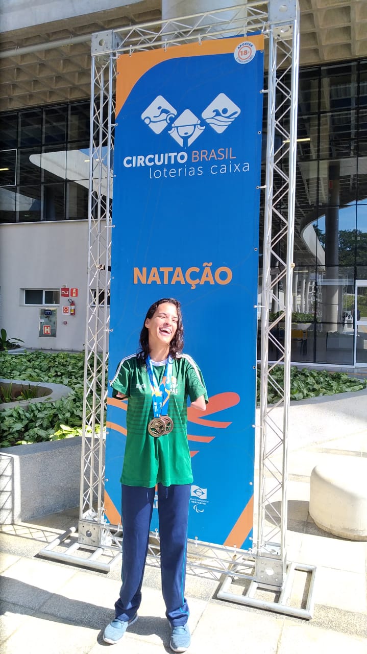 Ouro Nado Peito 50 Metros, batendo o seu próprio recorde brasileiro, baixando nove segundos com o tempo (01:36.74);