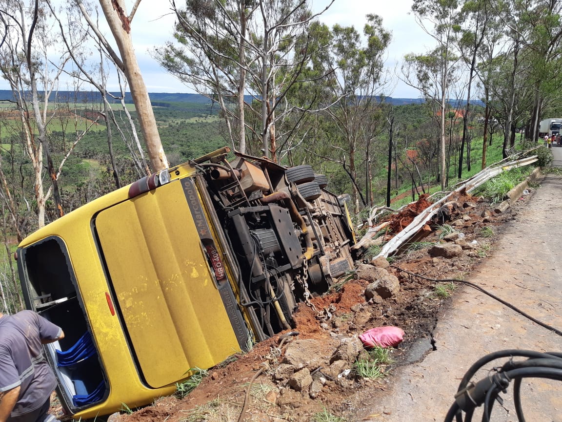O veículo ficou preso nos eucaliptos às margens da pista – se não fossem as árvores, teria despencado a ladeira e haveria muitos óbitos, o que, felizmente não aconteceu.