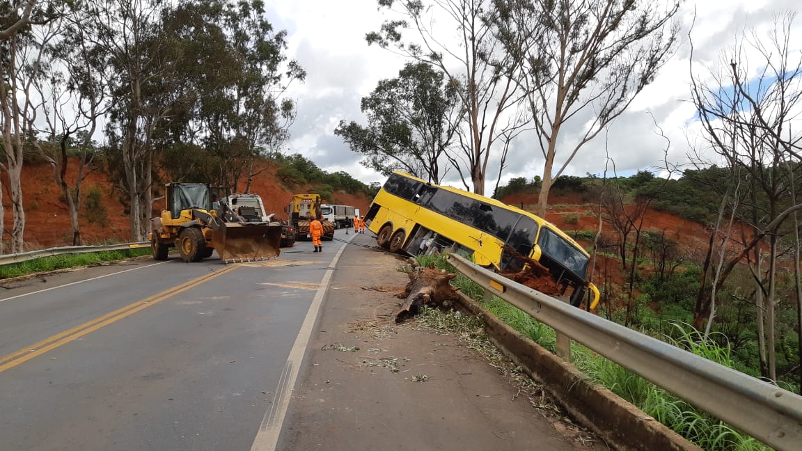 Acidente com ônibus na BR 040 deixa uma vítima fatal
