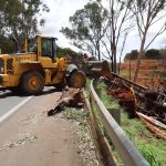 No início da manhã de domingo, começaram os trabalhos de remoção do ônibus. Mesmo com duas máquinas na pista, não foi possível retirar o ônibus com segurança.