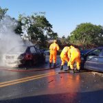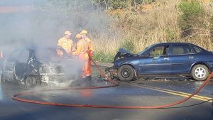 Em decorrência da colisão, o veículo Siena pegou fogo, sendo necessária a presença do Corpo de Bombeiros Militares para apagar o incêndio. A área foi isolada e o trânsito interrompido nos dois sentidos para averiguar a situação.