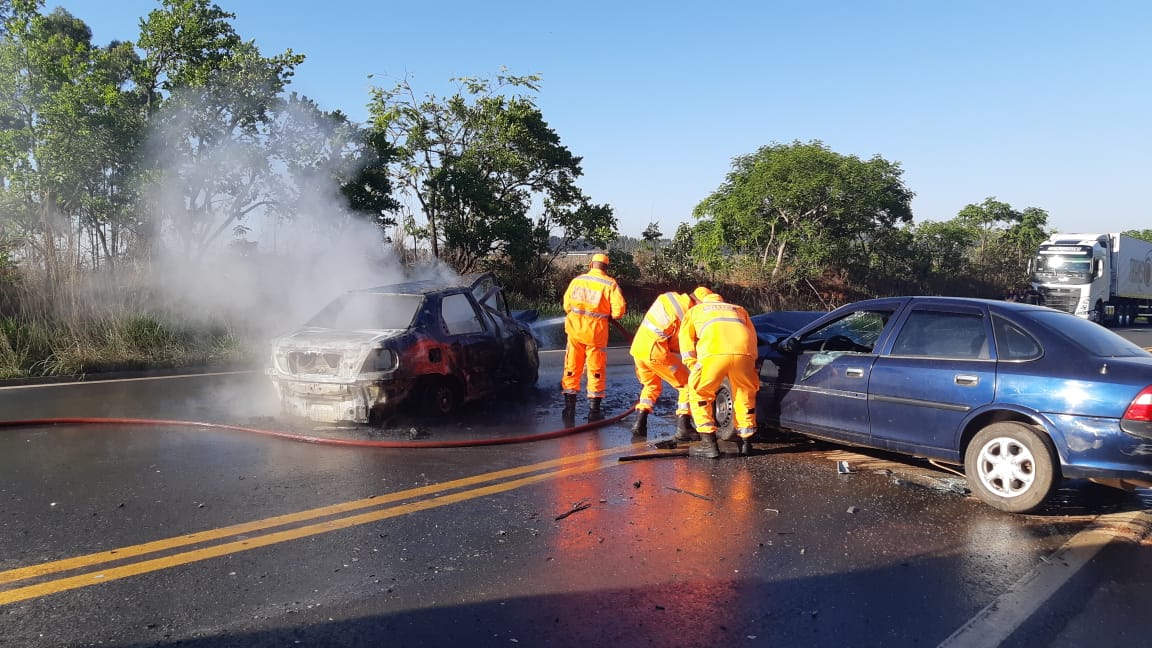 Em decorrência da colisão, o veículo Siena pegou fogo, sendo necessária a presença do Corpo de Bombeiros Militares para apagar o incêndio. A área foi isolada e o trânsito interrompido nos dois sentidos para averiguar a situação.