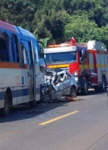 O acidente envolveu um ônibus de uma empresa na cidade de Patrocínio e um veículo de passeio.