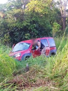 Algum tempo mais tarde, houve um roubo de um veículo, Fiat Doblo, cor vermelha, sendo a viatura acionada ao local dos fatos, e quando captava informações houve denúncia de que o veículo roubado havia também acabado de acidentar em uma estrada vicinal próxima a Coromandel/MG e que o autor estaria ferido e caminhando na estrada.