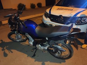 Durante patrulhamento preventivo pelo bairro Ouro Preto, militares visualizaram uma motocicleta transitando sem a placa de identificação gerando suspeição por parte dos militares.