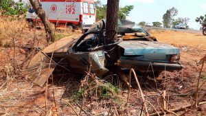 Após tentar fazer ultrapassagem, homem perde controle direcional, sai da pista e bate em árvore às margens da BR-365