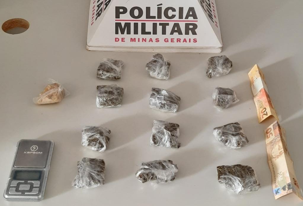 Ainda durante as buscas, militares localizaram uma sacola dentro de um sofá com 12 tabletes de substância semelhante à maconha além de duas pedras grandes de crack e uma balança digital contendo odor característico de crack.