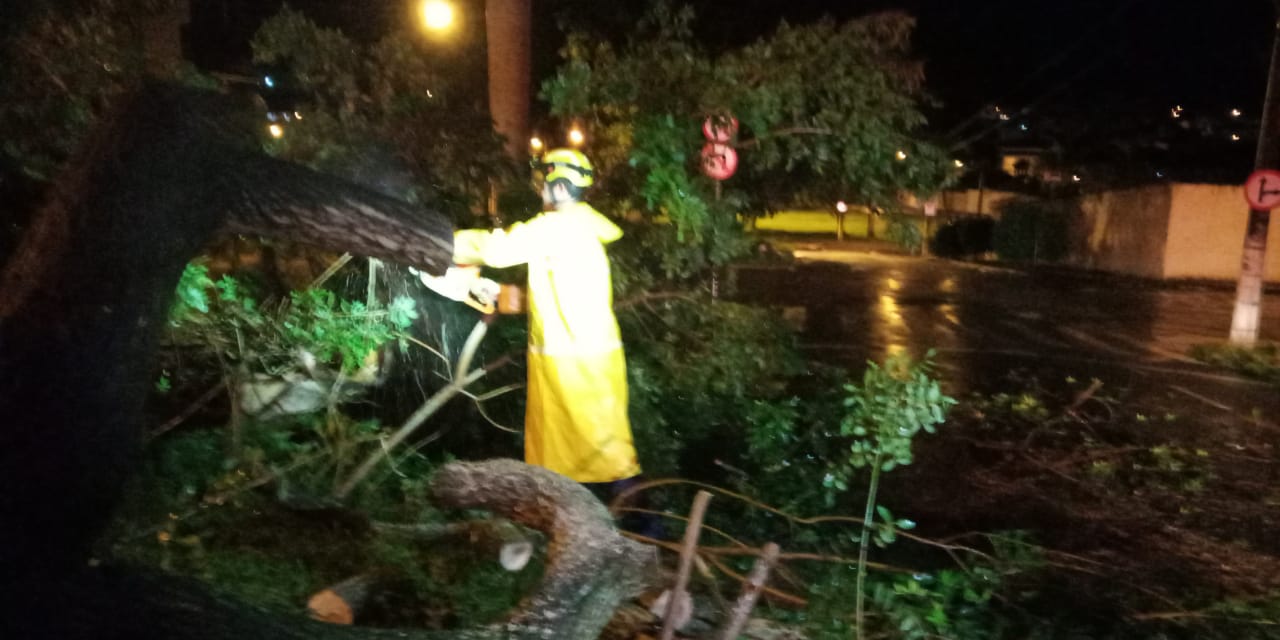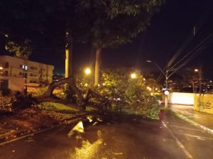 Por volta das 19h, o segundo pelotão do corpo bombeiros foi acionado para atender a uma ocorrência de queda de árvore na avenida Jacinto Barbosa, em frente ao número 123.