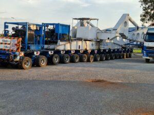 O veículo tem 123 metros de comprimento e transporta uma peça industrial de 636,5 toneladas, 5,7 metros de altura e 7 metros de largura. A carga estava estacionada em Patos de Minas e passará pela região com destino a Edealina (GO).