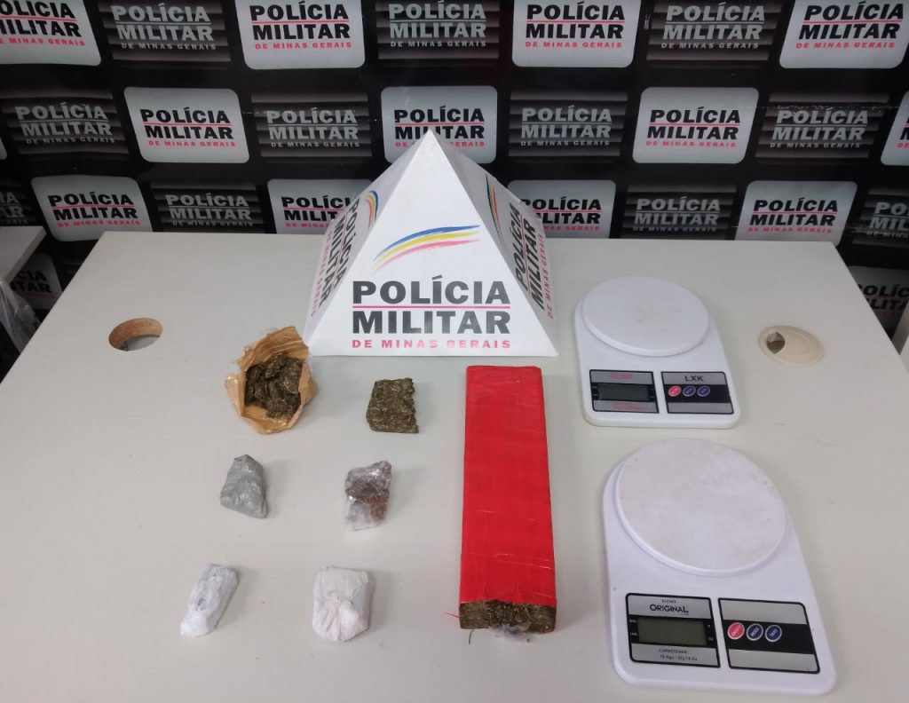 Durante as buscas foi encontrado, uma barra de maconha, seis tabletes de maconha, duas balanças de precisão e um aparelho celular.