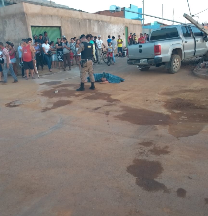 Bandidos tomam caminhonete de assalto e matam uma mulher atropelada