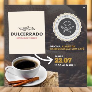 Durante a realização do Festival de Cultura e Gastronomia do Cerrado Mineiro que acontece em Patrocínio entre sexta e domingo no espaço cultural, a Cafeteria DulCerrado estará presente quando irá realizar oficinas no sábado a partir de 12h, com o tema “A arte da harmonização com café”, com apresentação de 3 diferentes cafés com as devidas harmonizações e no domingo também a partir de 12h com o tema “Culinária: O café como ingrediente”, onde serão apresentadas 3 receitas com uso do café, sendo salgada, doce e sobremesa. O investimento é de R$ 50,00 e 30 vagas para cada curso.
