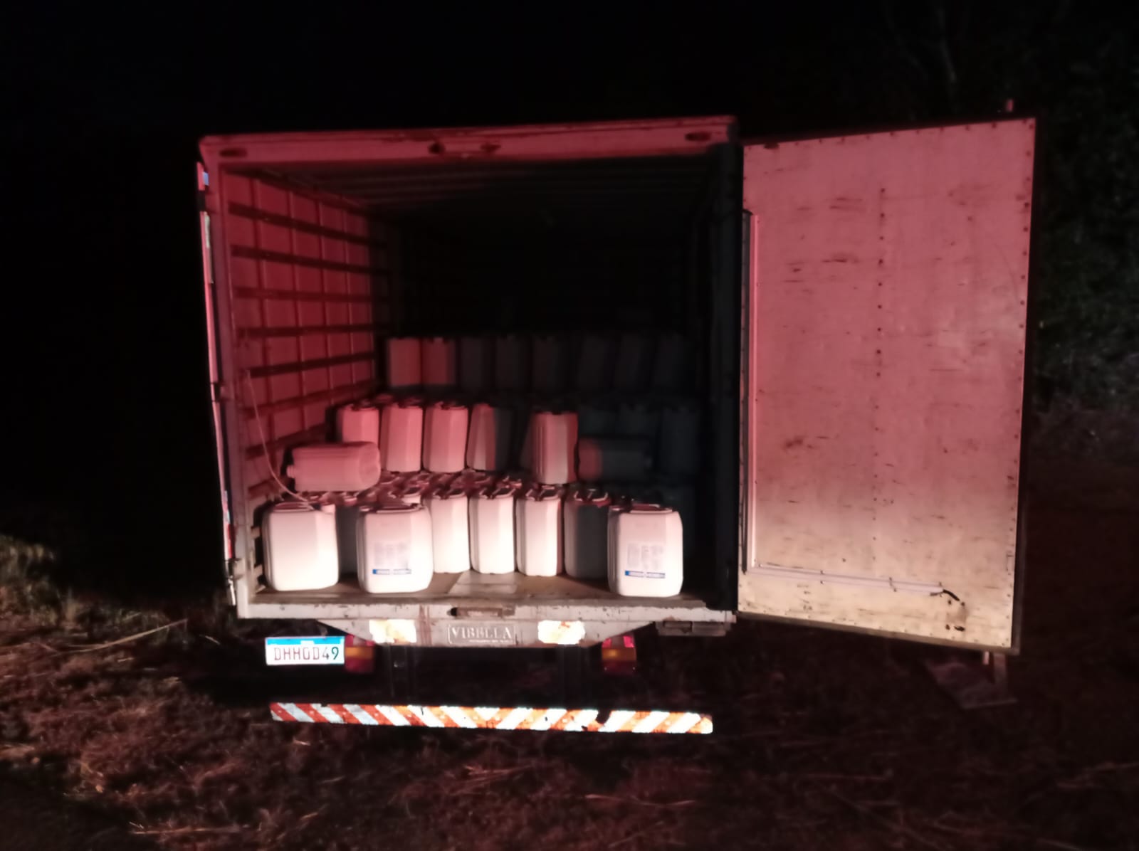 Como possui rastreador o veículo foi abandonado e a carga de defensivos avaliada em 600 mil reais foi recuperada pelos Militares.