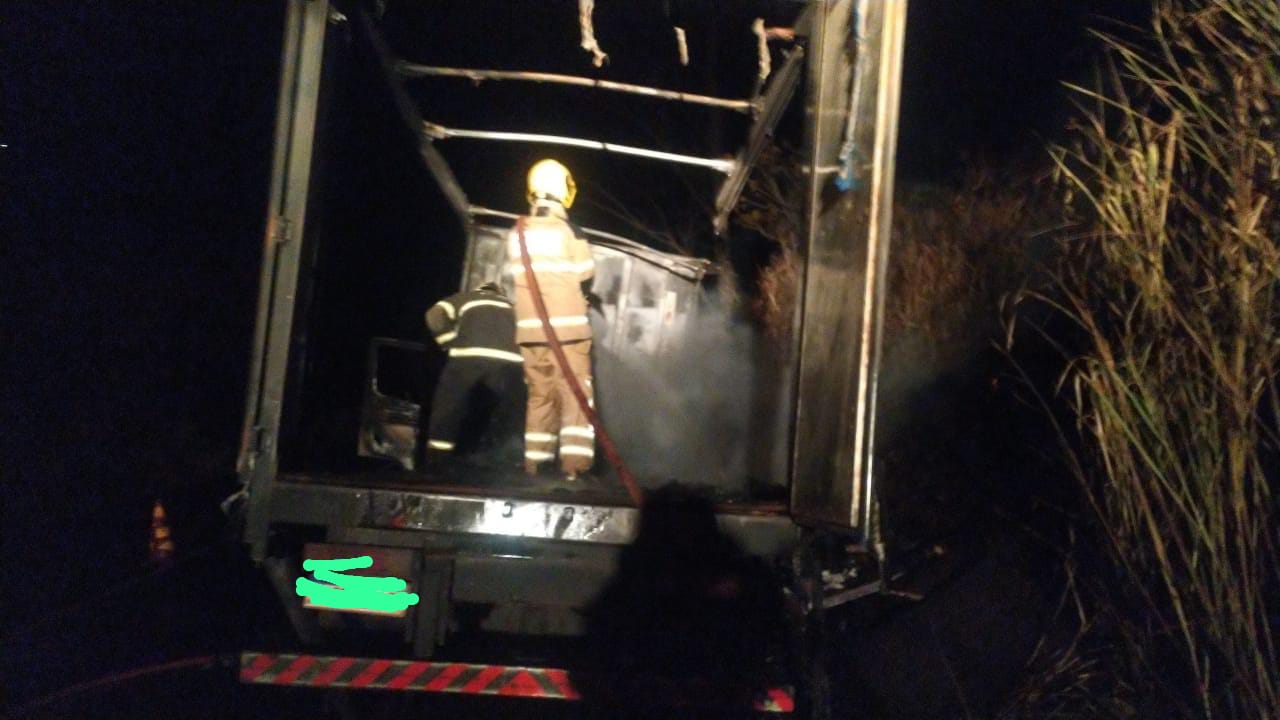 Na noite deste sábado (20), por volta de 20h00, militares do Segundo Pelotão do Corpo de Bombeiros, foram acionados para atendimento de uma ocorrência de incêndio em um caminhão Mercedes, na BR-365, próximo a entrada de acesso a comunidade de Macaúbas.