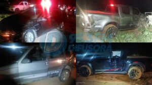 Caminhonetes colidem e atingem dois carros na MG-230, em Patrocínio
