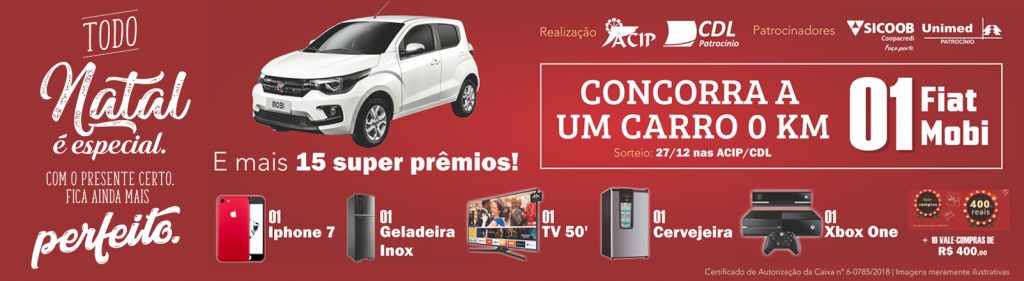 Para participar da campanha de Natal deste ano basta fazer as suas compras prestigiando o comércio local que está disponibilizando os cupons para serem preenchidos e, consequentemente, serão levados para a sede das ACIP e CDL para a realização do sorteio no próximo mês de dezembro.
