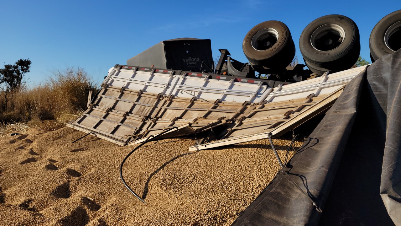 De acordo com as informações do próprio condutor da carreta que estava carregada de farelo de soja, em dado momento, foi surpreendido quando o veículo que estava a sua frente freou bruscamente e para evitar a colisão na traseira do veículo, o mesmo direcionou a carreta para a pista contrária tombando o veículo que ficou em meia pista.