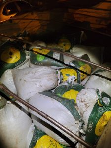 Após diligências e acompanhamento as pessoas suspeitas, militares lograram êxito em abordar a caminhonete responsável pelo frete do café a qual transportava 1.130 kg de café limpo e ensacado.