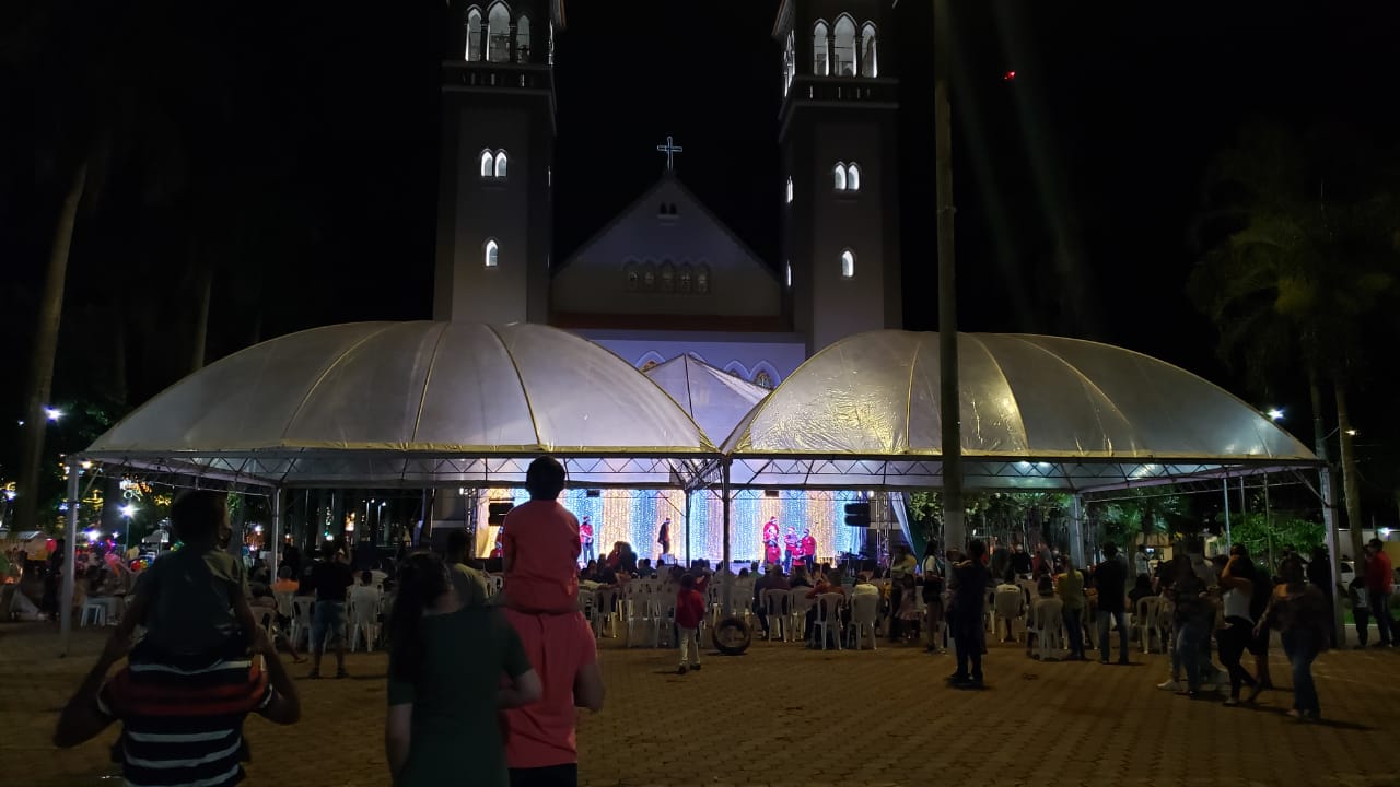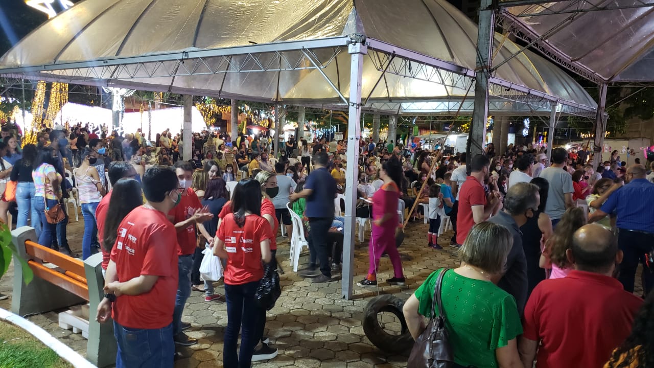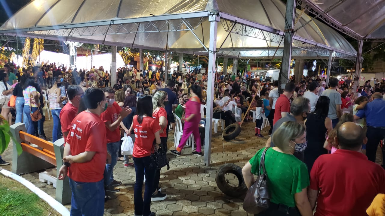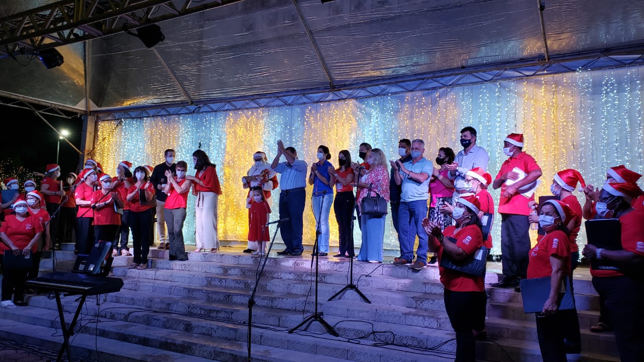 Na noite desta sexta-feira (04), ocorreu, na Praça Santa Luzia, a ligação da iluminação natalina, bem como a chegada do Papai Noel e a apresentação do coral Sintonia e Som de Paz.