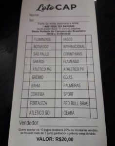 As cartelas também podem ser adquiridas na sede da APAE, na Rua Marechal Floriano, n° 170 – bairro: Cidade Jardim.