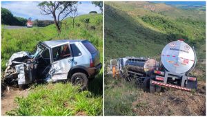 O acidente envolveu um Fiat Uno e um caminhão Romeu e Julieta. Com o impacto do acidente o automóvel ficou parado no acostamento da pista e o caminhão caiu em uma ribanceira.