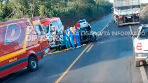 Colisão entre um carro e um caminhão é registrado na BR-365, próximo ao trevo da MG-188