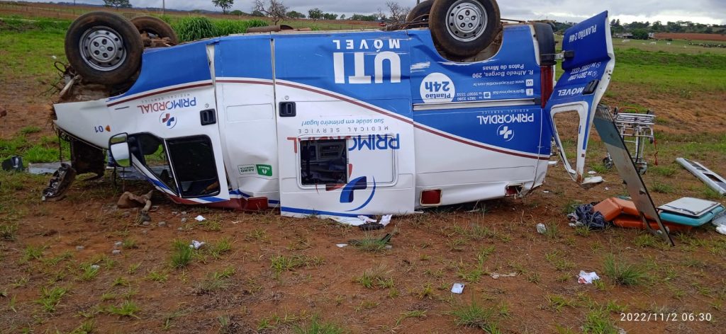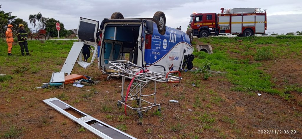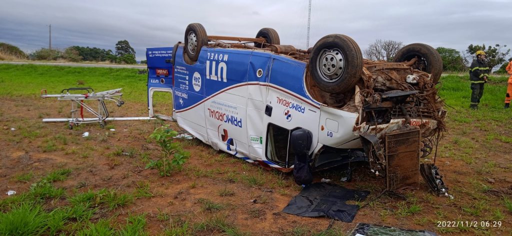 Na manhã desta quarta-feira (02), militares do Corpo de Bombeiros foram acionados para atender uma ocorrência de um capotamento de uma ambulância no trevo do distrito de Brejo Bonito na BR-146.