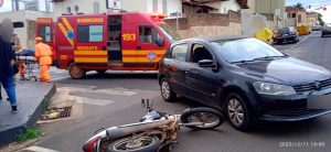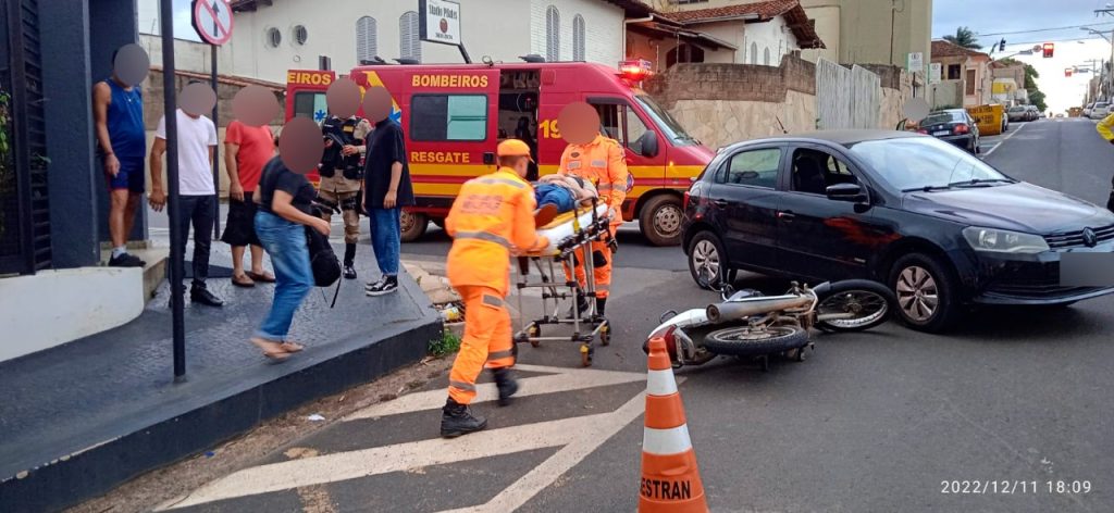 Neste domingo (11), por volta das 17h15, militares do 5° Pelotão do Corpo de Bombeiros compareceram ao cruzamento das ruas Coronel Rabelo com Professor Olímpio dos Santos, a fim de atender uma colisão envolvendo uma motocicleta e um automóvel.