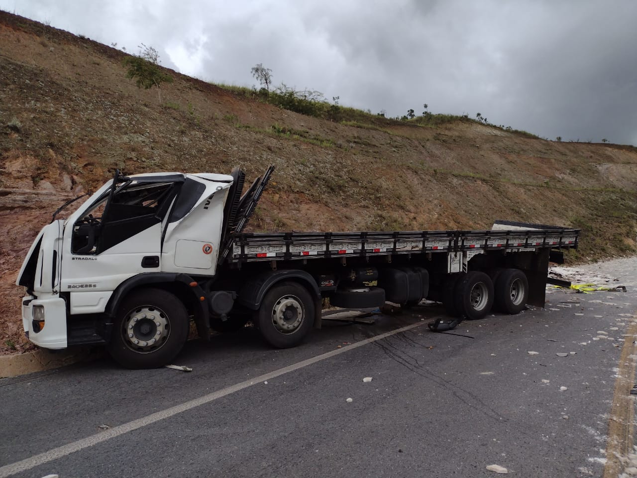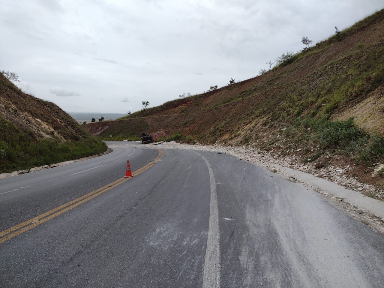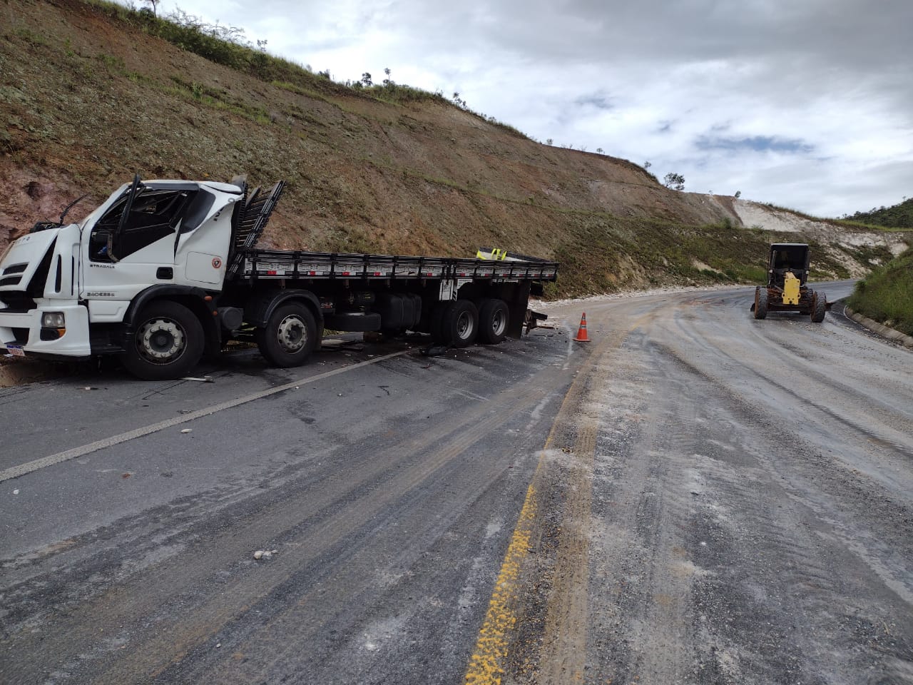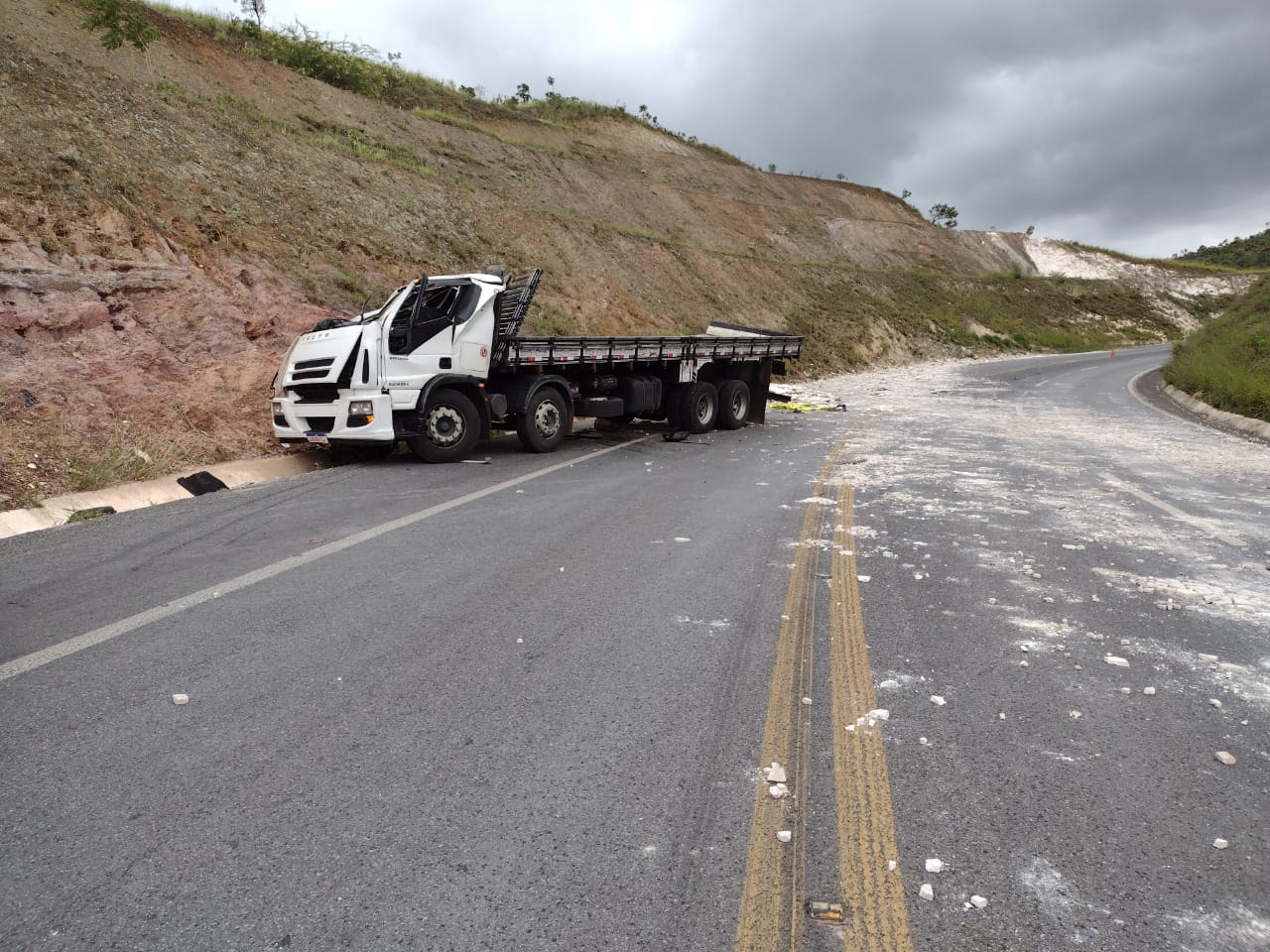 Durante Operação Carnaval 2021, a guarnição policial foi acionada e compareceu ao Km 59 da BR-146 onde ocorreu um acidente envolvendo o caminhão Iveco Tractor carregado com 17 toneladas de mármore.