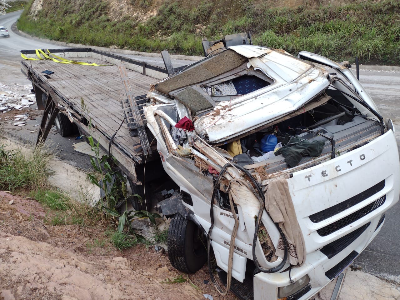 Condutor perde controle do veículo e caminhão colide em barranco na BR-146 no trecho conhecido como “descida da Catiara”