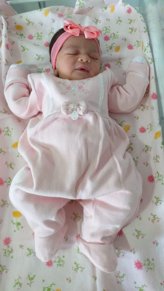 A recém-nascida veio ao mundo com 2.765 gramas, 46 centímetros às 00h13 deste domingo (01), no Hospital Santa Casa de Patrocínio.