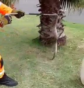 Ao chegar no local, os militares constaram que a cobra estava enrolada em um coqueiro.
