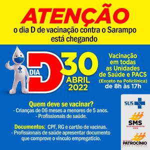 Neste sábado (30) acontece o Dia D da vacinação contra gripe e sarampo.