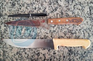 Militares iniciaram diligências e conseguiram localizar o autor. Diante dos fatos, ele recebeu voz de prisão e foi conduzido à delegacia da Polícia Civil para as demais providências, ficando à disposição da Justiça. As duas facas foram apreendidas.
