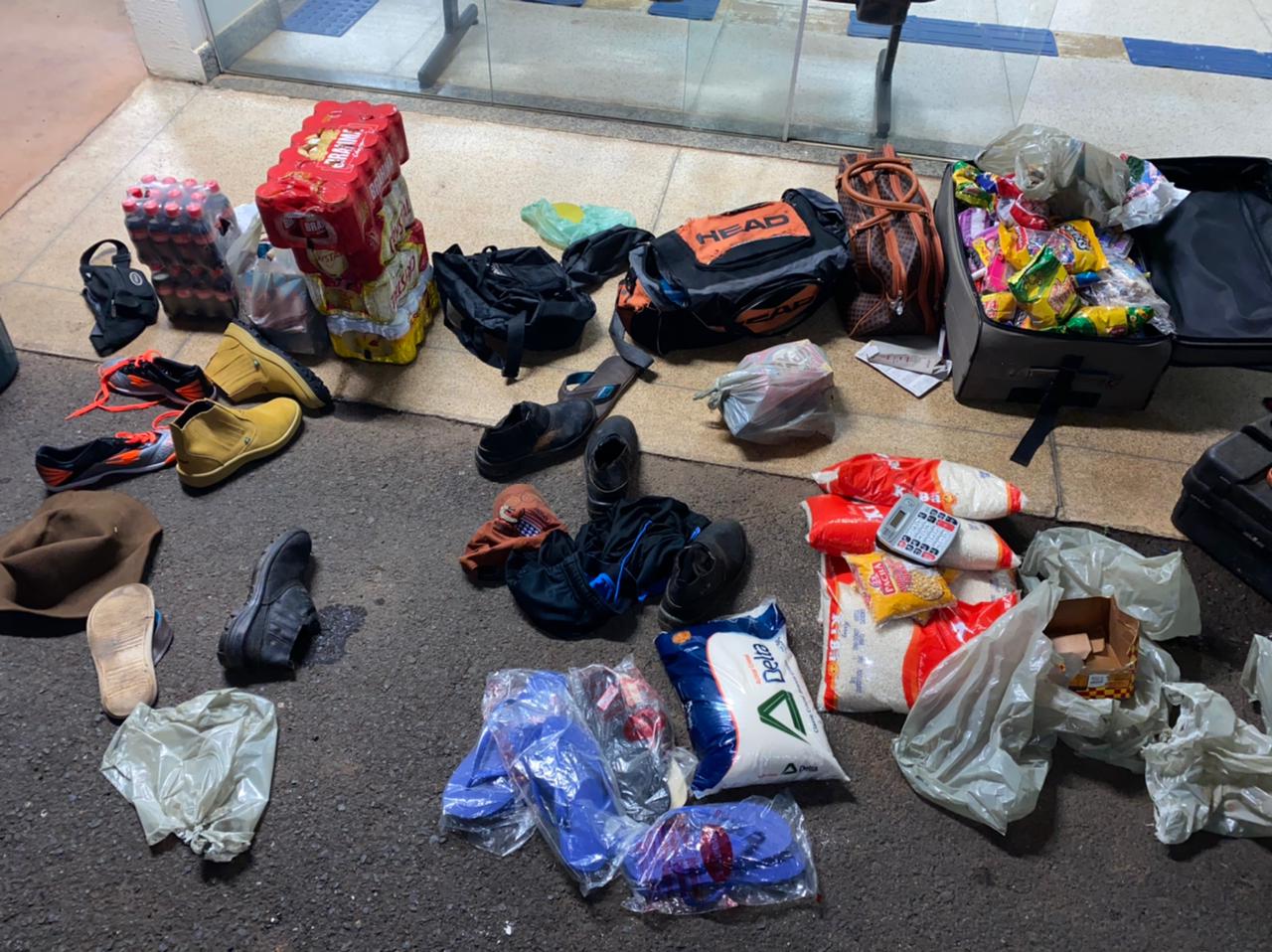 – Diversos gêneros alimentícios, balas, salgadinhos, isqueiros, materiais de limpeza, roupas, cervejas e refrigerantes em lata.