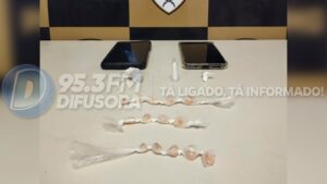 Após a interceptação, os policiais localizaram com um dos ocupantes, de 21 anos, 14 invólucros contendo substância semelhante ao crack, um pino de substância semelhante à cocaína e uma porção de maconha. Durante buscas no veículo, foi encontrada ainda outra porção de cocaína e um telefone celular.