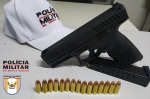 Durante fiscalização em veículo na CMG-462 Polícia Militar faz apreensão de pistola e 15 munições