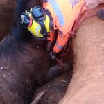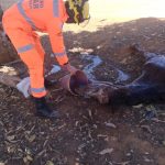Equipe do Corpo de Bombeiros resgata cavalo que caiu em uma fossa na Fazenda Serra Negra