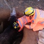 Os bombeiros orientaram à solicitante que essa fossa seja cercada, para que outros animais não venham a cair no local.