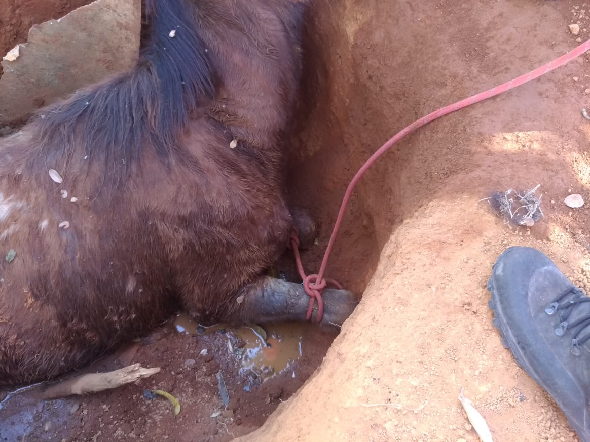 A equipe do 2° Pelotão do Corpo de Bombeiros de Patrocínio foi acionada, na manhã desta quinta-feira (20), por volta das 10h00, para retirarem, de uma fossa da fazenda Serra Negra, um cavalo que havia caído nessa madrugada e a solicitante só tomou conhecimento nesse horário.