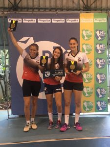 As atletas Regina Cely, Geovanna Borges e Rafala Caixeta, do PTC, conquistaram o título do Finals PEC, torneio de peteca que reuniu as melhores do ranking 2016. A competição foi realizada no último fim de semana, de 10 a 12 de fevereiro, em Belo Horizonte, que é considerada a capital nacional da peteca.