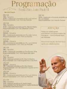 A paróquia São João Paulo II está nos preparativos para dar início a festa em louvor a seu padroeiro, localizado na comunidade do bairro Nações.