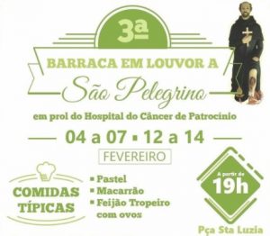 A 3ª festa em louvor a São Pelegrino será realizada entre os dias 4 a 7 e 12 a 14 de fevereiro em prol do Hospital do Câncer de Patrocínio e será no formato drive-thru, ainda em decorrência do cenário de pandemia da Covid-19.