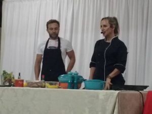 O número de participantes que apresentaram seus pratos dentro do Festival de Pratos Típicos a base de café e carne suína superou a expectativa da Acarpa. O evento foi realizado nesta quarta-feira (04), através de parcerias com Emater, Uncierp, Cafeteria Dulcerrado e Associação Brasileira dos Criadores de Suínos – ABCS. O evento contou com a participação da Chef de cozinha Raquel Passos, que cozinhou ao vivo para os participantes e falou sobre a diversidade de pratos que podem ser feitos com a carne suína, que é uma das mais consumidas em todo mundo. Ela comentou que um restaurante renomado em São Paulo, serve sushi de carne suína e com isso desmitificando o receio com a carne suína. Também destacou o sabor da carne suína que é muito suculenta e voltou no tempo quando era consumida a carne que era deixada em latas com a manteiga de porco, principalmente no meio rural.